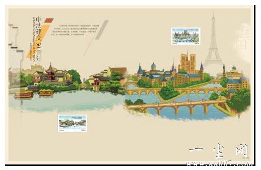 中国邮政定于2014年1月27日与法国联合发行《中法建交五十周年》纪念邮票1套2枚,面值2.40元,邮票表现南京秦淮河和巴黎塞纳河,邮票设计师为法国设计师伊夫•博雅尔,邮票将采用胶雕套印由北京邮票厂印制。