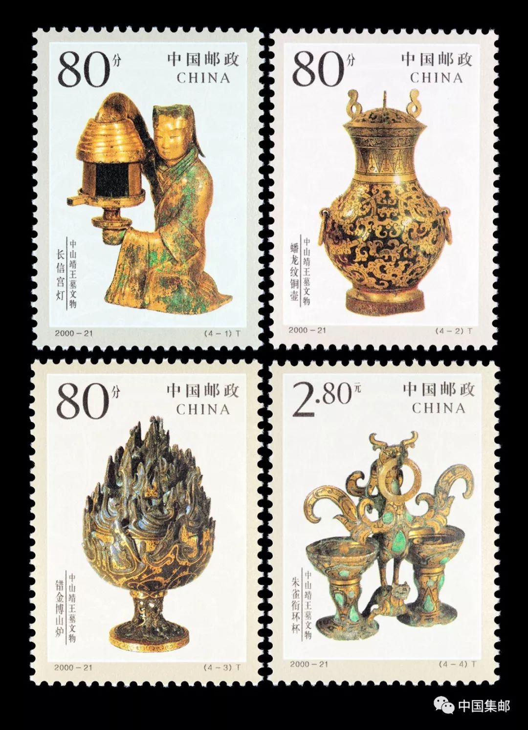 2000年10月20日,中国邮政发行了《中山靖王墓文物》特种邮票,全套邮票4枚,其中一枚便是我——蟠龙纹铜壶。