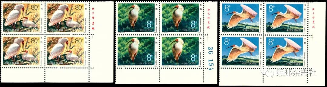 T.94“朱鹮”邮票带右下边纸、厂铭四方连