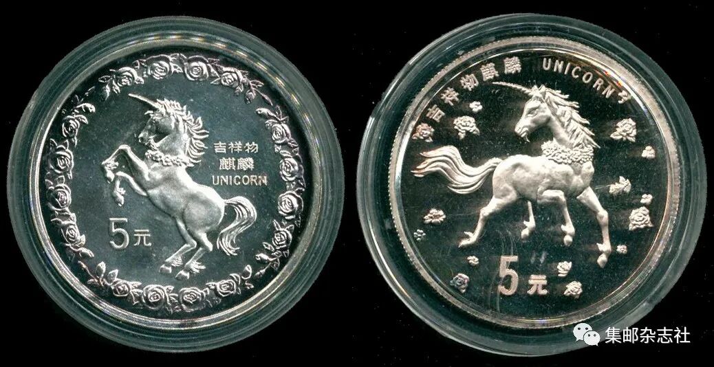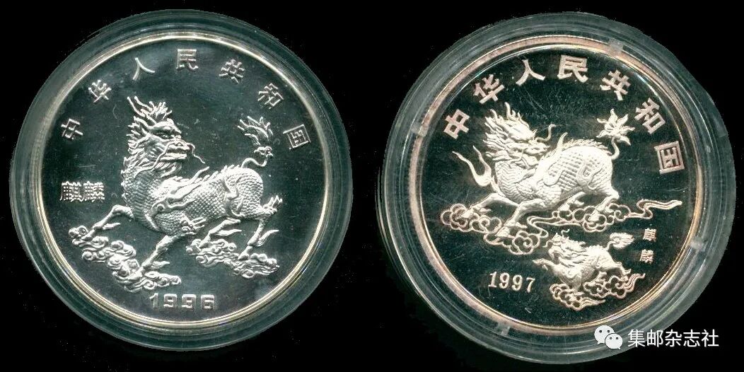 中国人民银行1996年、1997年发行“麒麟”银币各一枚(局部氧化)