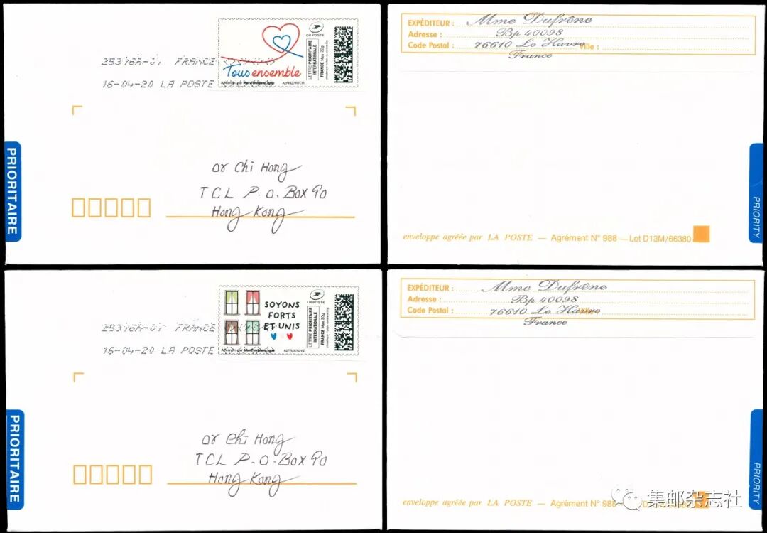 法国2020年“抗击新冠肺炎疫情”个性自动化邮票实寄封一套2枚