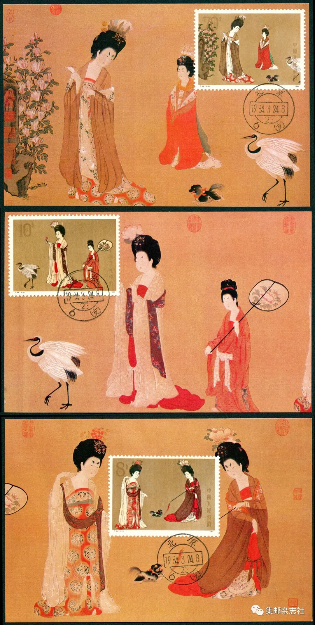 北京市邮票公司“簪花仕女图”邮票极限片一套3枚
