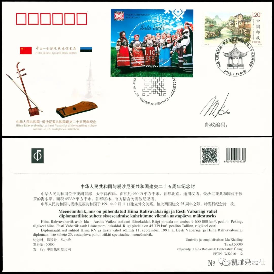 中国集邮总公司“中国—爱沙尼亚建交25周年”纪念封组外品一枚