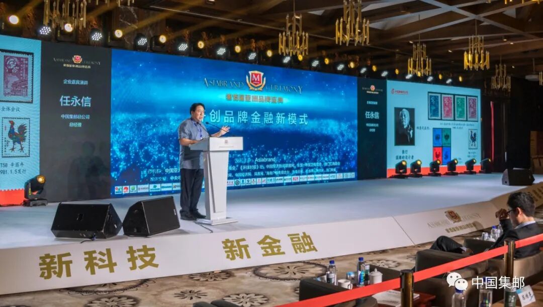 中国集邮总公司党委书记、总经理任永信在“第15届亚洲品牌盛典”上,代表上榜企业发表了《以邮为媒展文脉 以文化心铸品牌》的主旨演讲。
