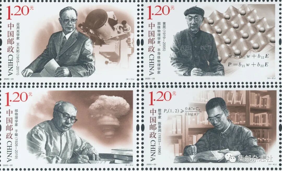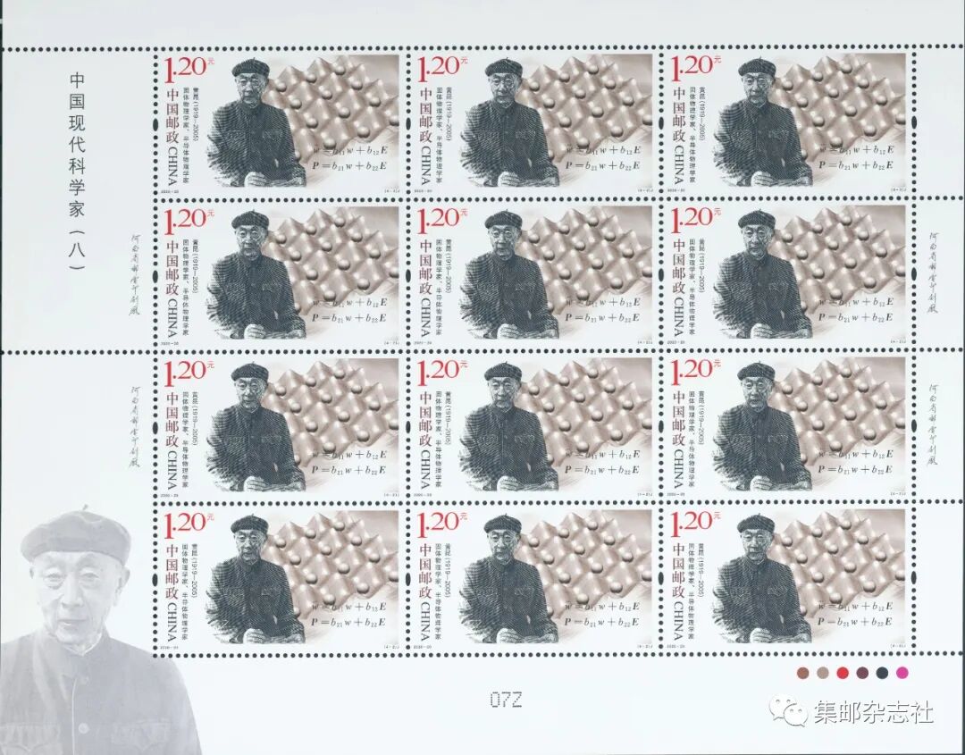 黄昆,固体物理、半导体物理学家。主要从事固体物理理论、半导体物理学等方面的研究,是中国半导体物理学研究的开创者之一。邮票背景为黄昆原著固体物理学教材封面概念图和“黄方程”。