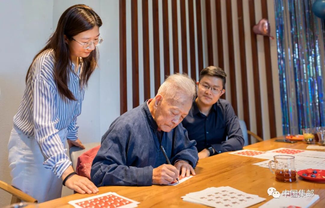 周令钊在《戊戌年》邮票上签名