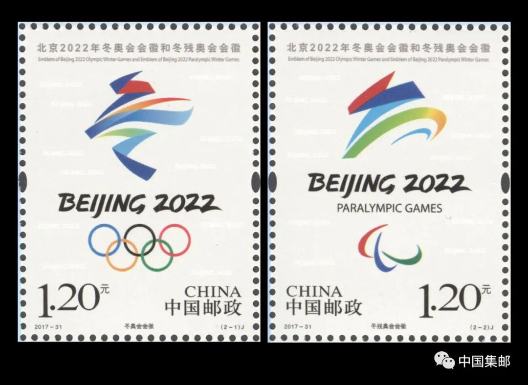 本套邮票于2017年12月31日发行,一套两枚,分别以冬奥会会徽“冬梦”和冬残奥会徽“飞跃”标志为核心元素,背景采用简洁的冬雪白,力求最大限度地还原会徽本身的精神内涵,给人以纯净的视觉感受。印制工艺上,特殊印制材料的应用,赋予了邮票以科技感和绚丽的视觉感受;邮票中22个“Beijing2022”字样,在不同的光照角度下,隐约可见。
