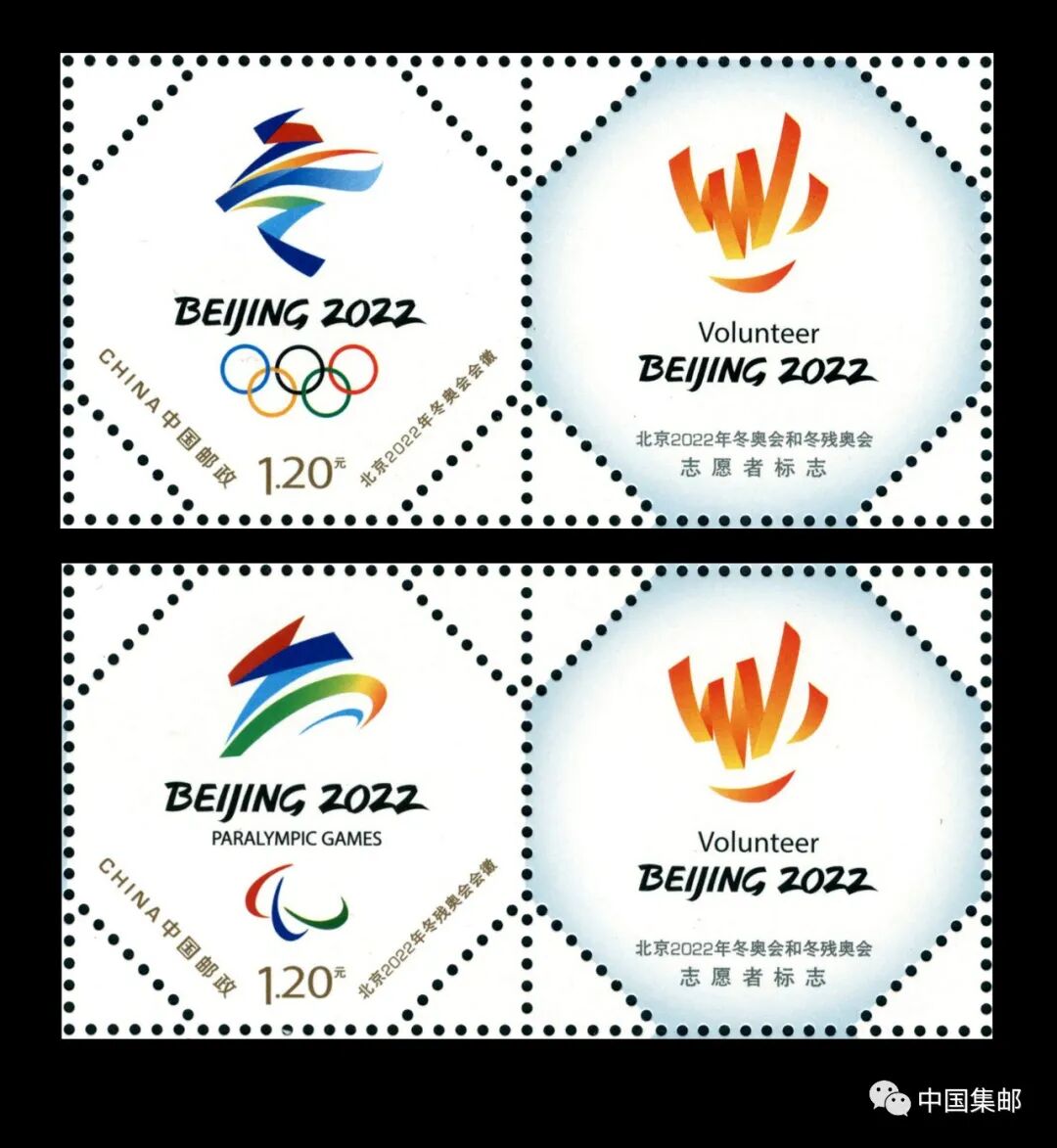 该套邮票于2019年12月7日发行,两枚主图分别表现了北京2022年冬奥会会徽和冬残奥会会徽,附图则表现了北京2022年冬奥会和冬残奥会志愿者标志。该套邮票在发行、设计方面也秉持了奥运精神,实现了多个“首次”。它打破了以往体育赛事个性化邮票一套一枚的传统惯例,首次发行一套两枚的主图;它首次在个性化邮票中采用八边形设计,其灵感取自中国传统文化中的宫灯造型,寓意“欢迎八方来客、共贺冬奥盛会”的理念。