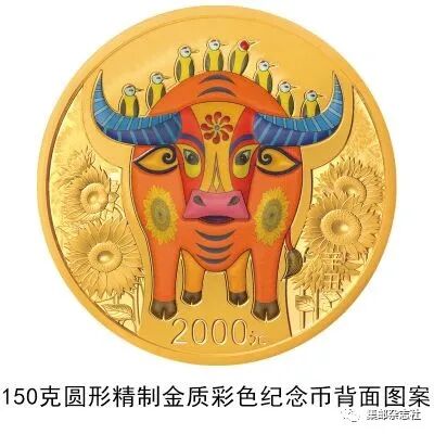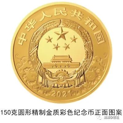 (六)150克圆形金质彩色纪念币为精制币,含纯金150克,直径60毫米,面额2000元,成色99.9%,最大发行量1000枚。