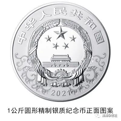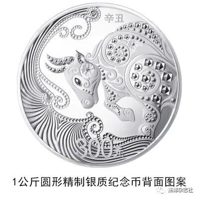 (十)1公斤圆形银质纪念币为精制币,含纯银1公斤,直径100毫米,面额300元,成色99.9%,最大发行量5000枚。