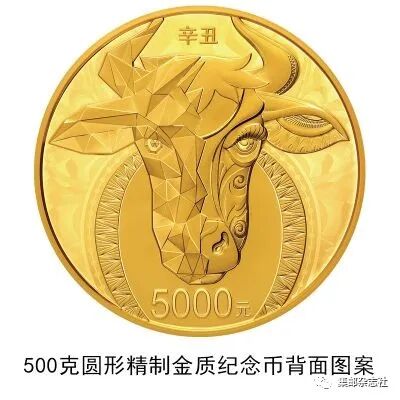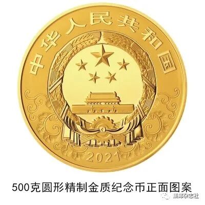 (四)500克圆形金质纪念币为精制币,含纯金500克,直径80毫米,面额5000元,成色99.9%,最大发行量500枚。