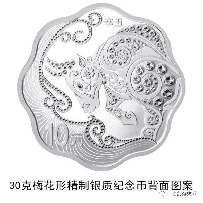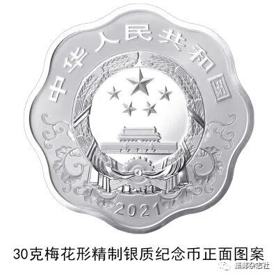 (十三)30克梅花形银质纪念币为精制币,含纯银30克,外接圆直径40毫米,面额10元,成色99.9%,最大发行量50000枚。