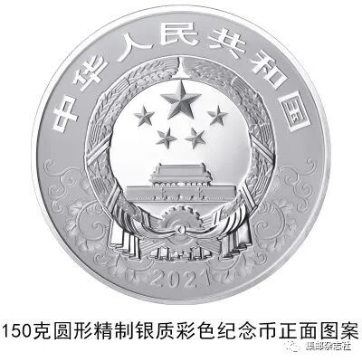 (十二)150克圆形银质彩色纪念币为精制币,含纯银150克,直径70毫米,面额50元,成色99.9%,最大发行量10000枚。