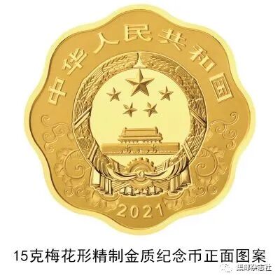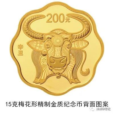 (七)15克梅花形金质纪念币为精制币,含纯金15克,外接圆直径27毫米,面额200元,成色99.9%,最大发行量6000枚。