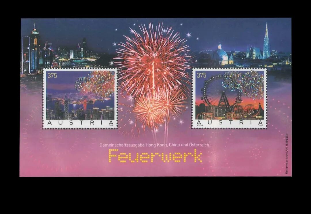 此后,奥地利邮政还曾与中国香港邮政合作推出《烟花》特别邮票,通过水晶与邮票的结合展现烟花的璀璨。邮票上水晶的折射效果新奇动人,极富立体感。