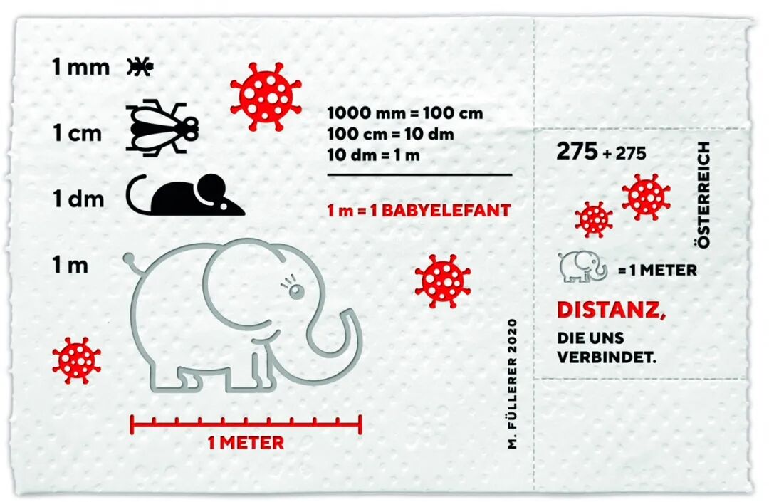 您一定还记得前一阵新闻报道中欧美民众排队抢购卫生纸的新闻。对于从来也没有操过这份心的我们来说,真是难以想象。我们总说,小小邮票,见证历史,记录变迁。这不,最近奥地利邮政为纪念疫情期间的恐慌性购物,竟与一家卫生纸制造商合作推出了卫生纸材质邮票。我们权且叫它“卫生纸型张”吧。它由三层卫生纸制成,每张长10厘米,与标准厕纸的大小和形状一样,面值为2.75欧元。邮票上还印有2.75欧元的附捐额,表明其附捐邮票的身份。型张边饰上设计有四种小动物图案用来提醒大家在疫情中要保持社交距离,分别代表1毫米、1厘米、10厘米和1米。邮票上还特别告知,保持1米的距离就相当于1头象宝宝的身长。真是一种特别的提醒方式。另外,这款邮票采用了卫生纸的打孔方式,可沿穿孔线撕下,最大程度模仿卫生纸的形态。当然,它并不是真的卫生纸,设计者为增强其抗撕裂性还设计有自粘箔纸,并使邮票能够更容易的撕出来。