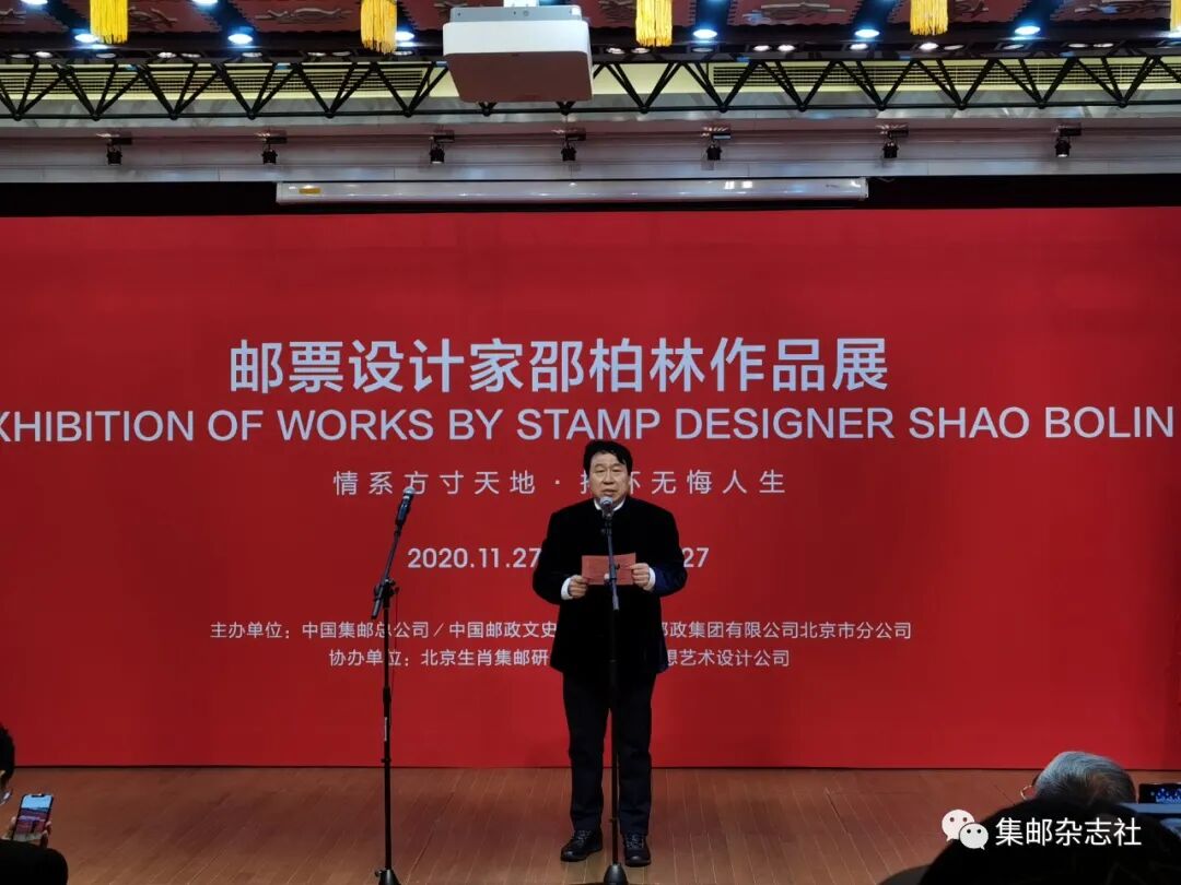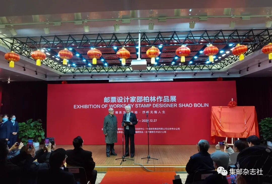 “情系方寸天地,抒怀无悔人生”——邮票设计家邵柏林先生作品展于2020年11月27日在中国邮政邮票博物馆隆重开幕。本次展览由中国集邮总公司、中国邮政文史中心、中国邮政集团有限公司北京市分公司共同主办,北京生肖集邮研究会、北京理想艺术设计公司协办,著名主持人陈铎先生主持开幕式。中国集邮总公司特为此次展览发行纪念封一枚。