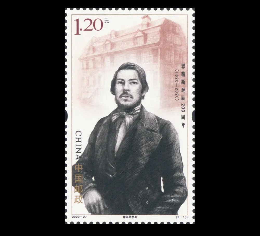 弗里德里希·恩格斯(1820—1895),马克思主义的创始人之一,马克思的亲密战友,全世界无产阶级和劳动人民的伟大领袖和导师。今年是恩格斯诞辰200周年,也是《共产党宣言》中文全译本出版100周年。中国邮政于今日发行《恩格斯诞辰200周年》纪念邮票一套两枚。