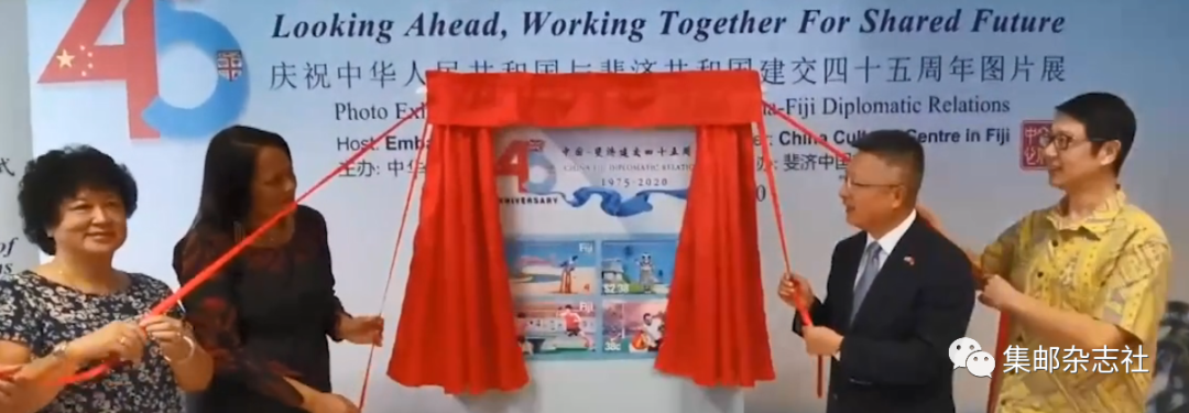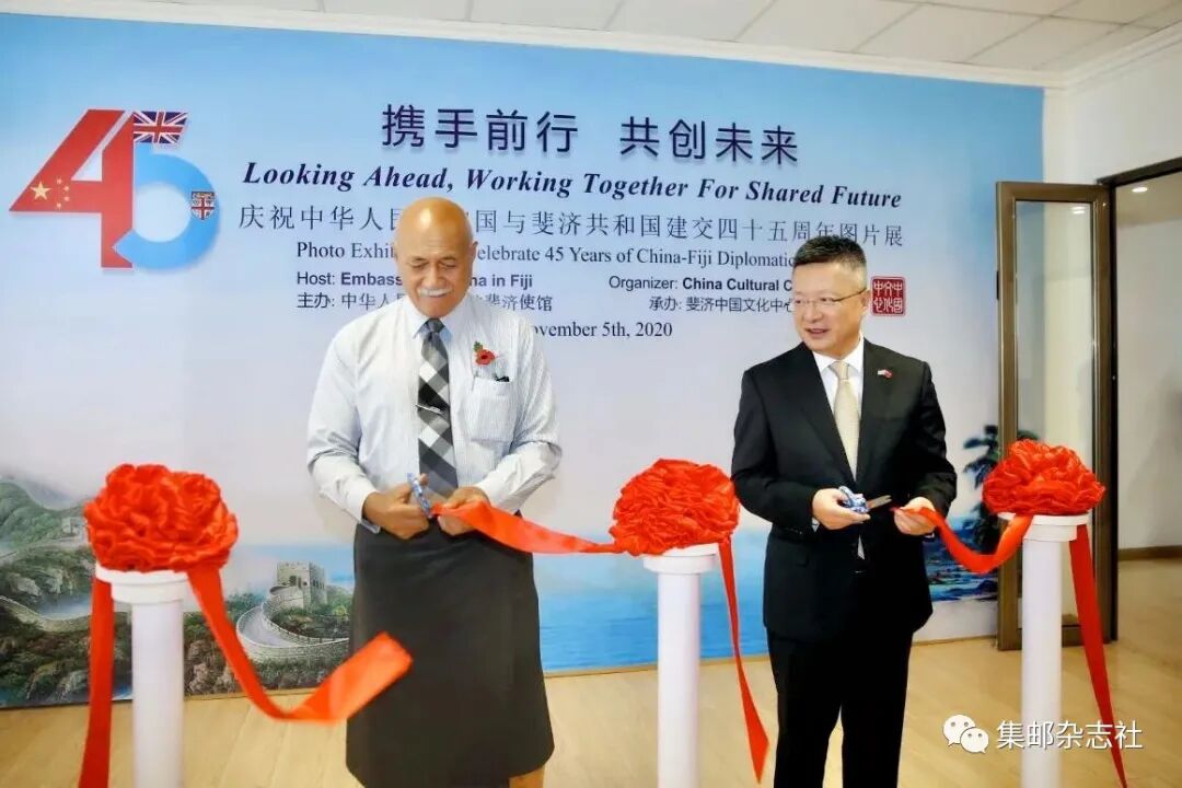 11月5日,中国与斐济建交45周年之际,驻斐济使馆在斐济中国文化中心举办中斐建交45周年图片展。斐济总统孔罗特和钱波大使出席开幕式并为展览剪彩。在图片展开幕式上还举行了两国建交45周年纪念邮票揭幕活动。