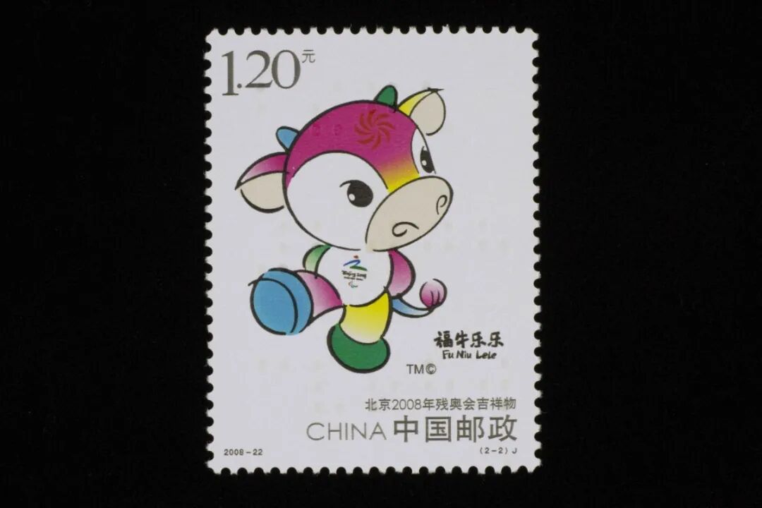 2008年9月6日,北京2008年残奥会在中国北京隆重举行,实现了中国对世界“两个奥运,同样精彩”的庄严承诺。为了体现这种纪念意义,中国邮政特发行《北京2008年残奥会》纪念邮票,全套2枚,面值均为1.20元,图案分别为北京2008年残奥会会徽和北京2008年残奥会吉祥物。北京2008残奥会会徽以天、地、人和谐统一为主线,把中国的文字、书法和残疾人奥林匹克运动精神融为一体。福牛乐乐是北京残奥会吉祥物,牛的良好形象蕴含着残疾人运动员自强不息和顽强拼搏的精神,与残奥会运动员奋发向上的品格以及北京残奥会“超越、融合、共享”的理念相契合。这套邮票的发行时间为2008年9月6日,正值开幕当天,更具纪念意义。