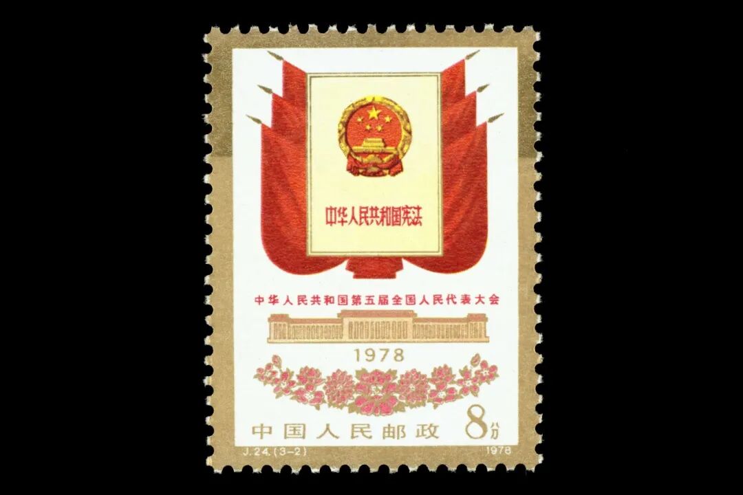 1978年2月26日,为纪念《中华人民共和国第五届全国人民代表大会》的举行,发行邮票一套3枚。其中,第2枚为“人民的宪法”,由于当时历史条件的限制,这部《宪法》未能彻底清理“文化大革命”期间“左”的思想影响,还存在一些不正确的政治理论观念和不适应客观实际情况的条文规定。邮票图案为六面红旗托衬着一部宪法,下方为人民大会堂的正门。