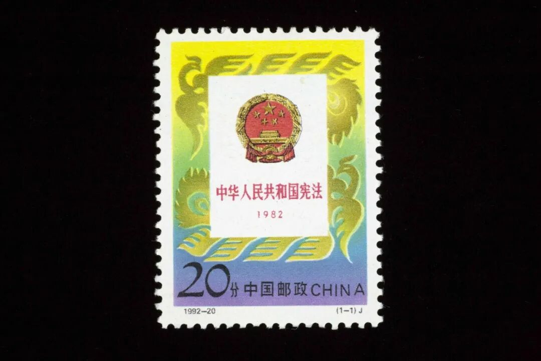 1992年12月4日,为纪念现行宪法颁布10周年,发行1992-20《中华人民共和国宪法(1982—1992)》纪念邮票1枚。邮票图案为一对金色凤凰衬托下的宪法。凤凰是幸福、吉祥的象征,寓示着中国人民在中国共产党的领导下,团结奋斗,创造出一个太平盛世。国家繁荣昌盛,人民安居乐业。