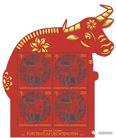 11月18日,列支敦士登邮政发行了“牛年”生肖邮票,列支敦士登今年的生肖邮票依旧采用激光雕刻工艺印制。这也是列支敦士登邮政发行的第10套生肖题材邮票。