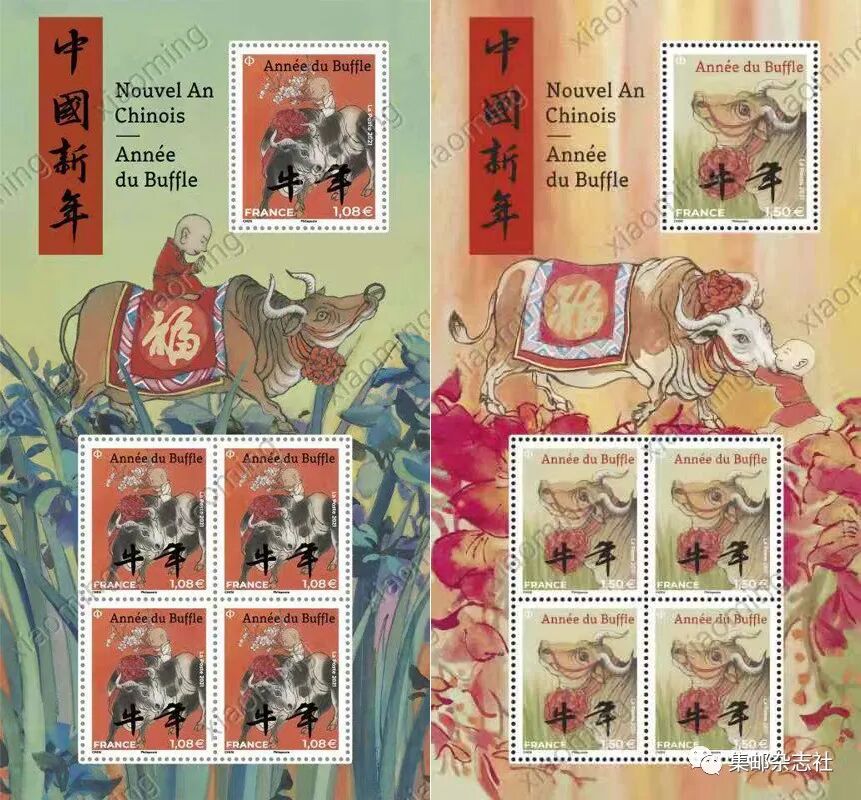 法国的“牛年”生肖邮票将于2021年2月发行。日前,法国邮政公布了“牛年”生肖邮票的图稿,法国的“牛年”生肖邮票全套2枚。