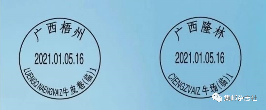 为迎接辛丑年的到来,广西邮政将在广西壮族自治区所属的14个地级市辖区内各启用一枚带“牛”字的临时日戳。
