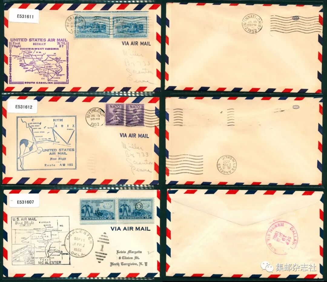 026号 1951年美国首航封一组6枚