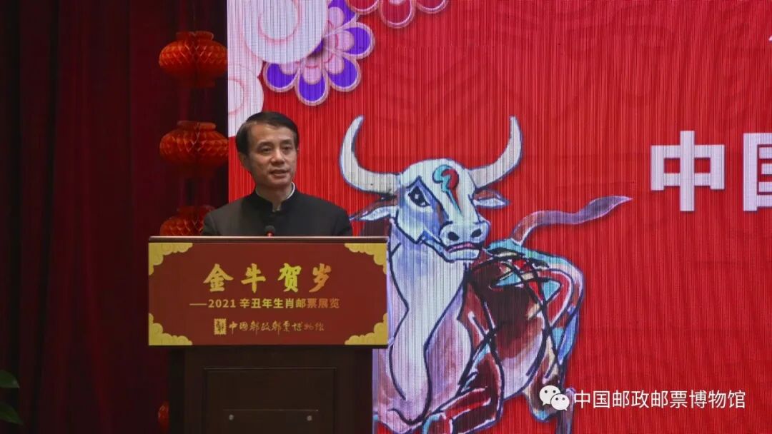 为配合邮票首发,营造新春喜庆祥和的氛围,由中国邮政集团有限公司主办、中国邮政文史中心(中国邮政邮票博物馆)承办的“金牛贺岁——2021辛丑年生肖邮票展览”在中国邮政邮票博物馆开幕。