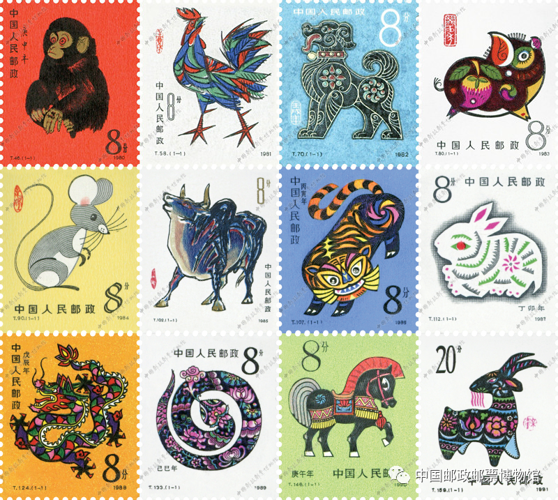邮票被誉为“国家名片”。中国邮政从1980年发行第一套《庚申年》“猴票”以来,每年都会为迎接农历新年发行生肖邮票,迄今已经发行了四轮共42套。这些生肖邮票内容丰富、风格各异,彰显着新春喜庆祥和的氛围,也承载着不同时代人们的审美变迁。