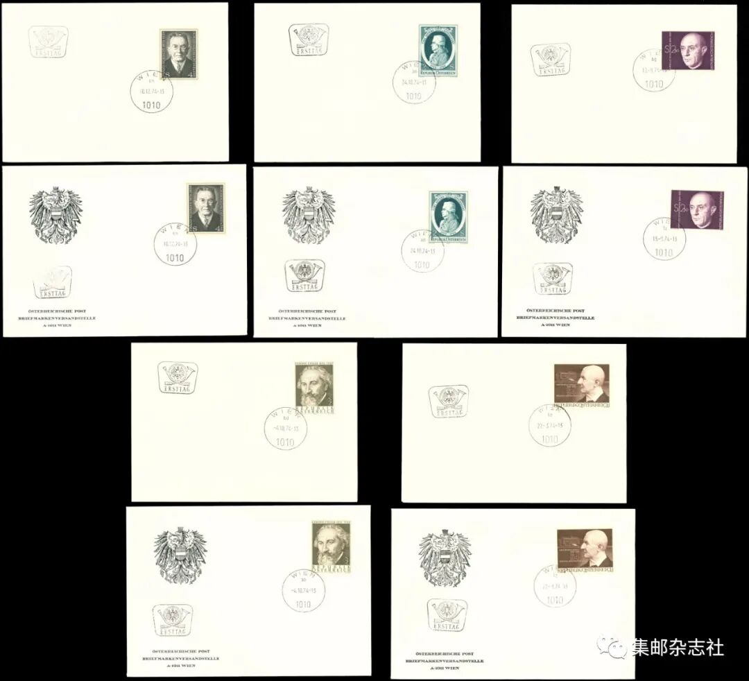 035号 1974年奥地利雕刻版作曲家系列邮票首日封和盖销贴票折纸5对共10件