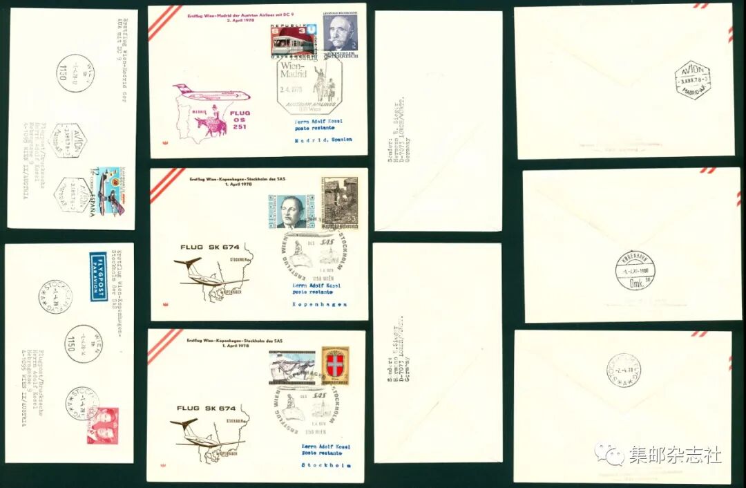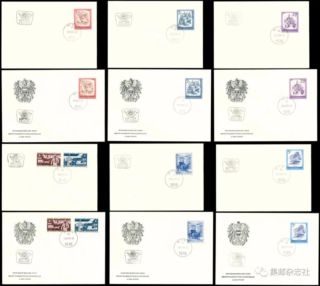 036号 1974年奥地利风光与邮政主题邮票首日封和盖销贴票折纸6对共12件(大多为雕刻版邮票)