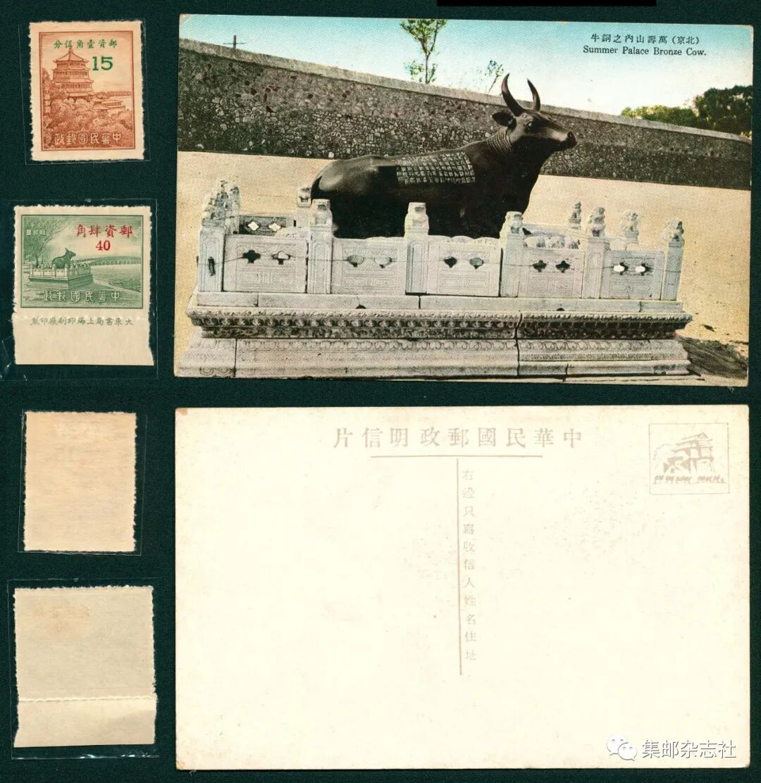 005号 民特3北平风光全套新票(高值票带厂铭)、民国颐和园铜牛图画明信片新片1枚