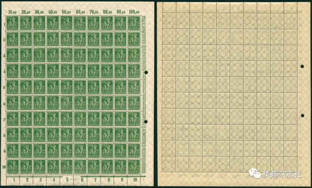 029号 1921年德国采矿邮票100芬尼100枚整版新票