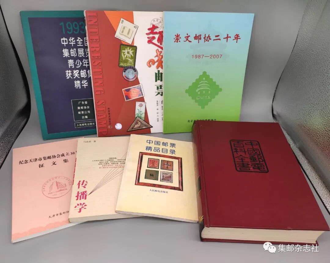 039号 《趣味邮票》《中国邮票精品目录》《中国邮电百科全书(电信卷)》《收藏传播学》(有作者签名钤印)等文献7种