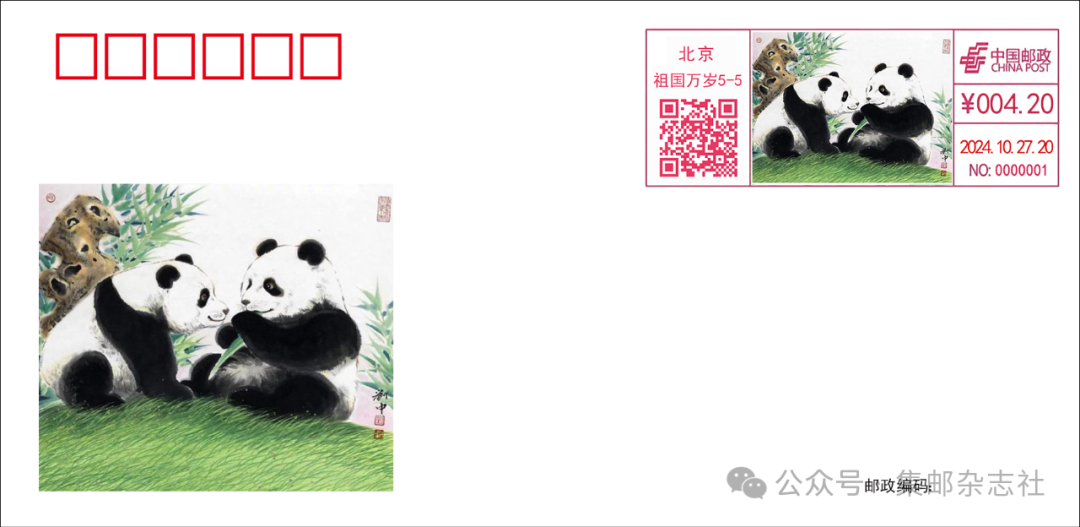 ![]() ![]() 经中国邮政集团有限公司批准,北京祖国万岁主题邮局将于2024年10月27日启用“国际熊猫日”彩色数字打印型邮资机戳一枚。 为了方便大家收藏,《集邮》杂志微店上架了该枚邮资机戳的挂号实寄封。实寄封使用美术封为载体,启用首日加盖邮资机戳,挂号实寄给预订者。识别上方二维码即可预订。