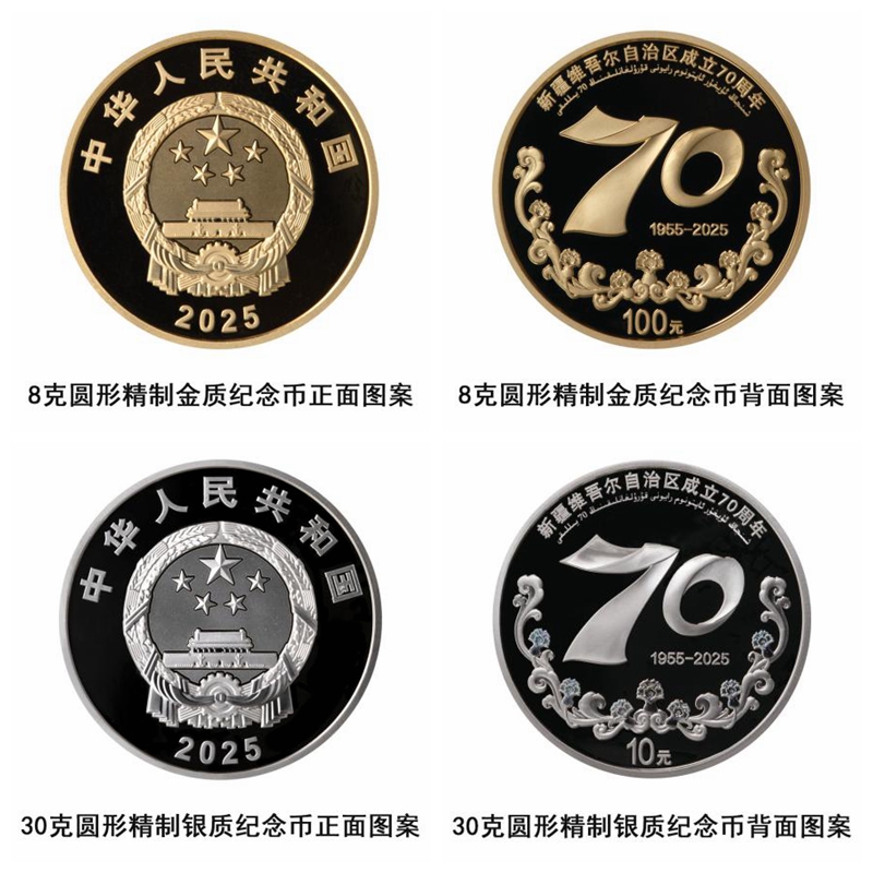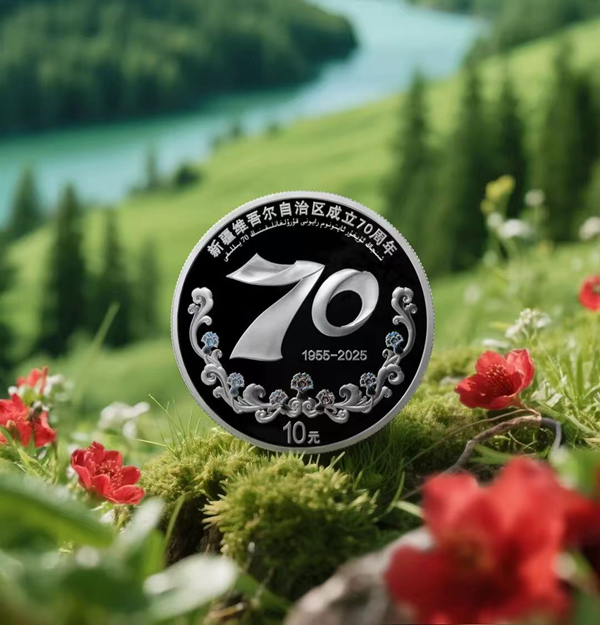砥砺奋进七十载,天山南北谱华章,2025年是新疆维吾尔自治区成立70周年。在中国共产党的领导下,特别是党的十八大以来,在以习近平同志为核心的党中央坚强领导下,新疆各项事业取得全方位进步、历史性成就。在这一重要历史节点,中国人民银行于2025年9月19日发行新疆维吾尔自治区成立70周年金银纪念币一套。