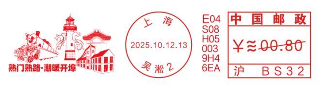 现定于2025年10月12日启用《熟门熟路·潮暖开埠》YFM118E型邮资机戳1枚。邮资机戳使用期限:启用当日。