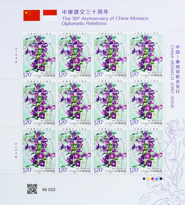本套邮票分别选用具有两国民族特色和深厚文化内涵的花卉,中国选用栽培历史悠久的春兰,摩纳哥选用美丽灵动的风铃草,两种花卉彰显出生态文明的内在价值与精神追求。邮票图案采用油画表现方式,设计师通过大胆的构图、恣意的笔触、灵活的色彩搭配,对具体的物象进行抽象提炼,从而营造出一种生动而富有生命力的画面效果。两枚邮票承载着“友谊长存”的深层寓意,希望中摩关系不断取得新进展,更好造福两国人民。