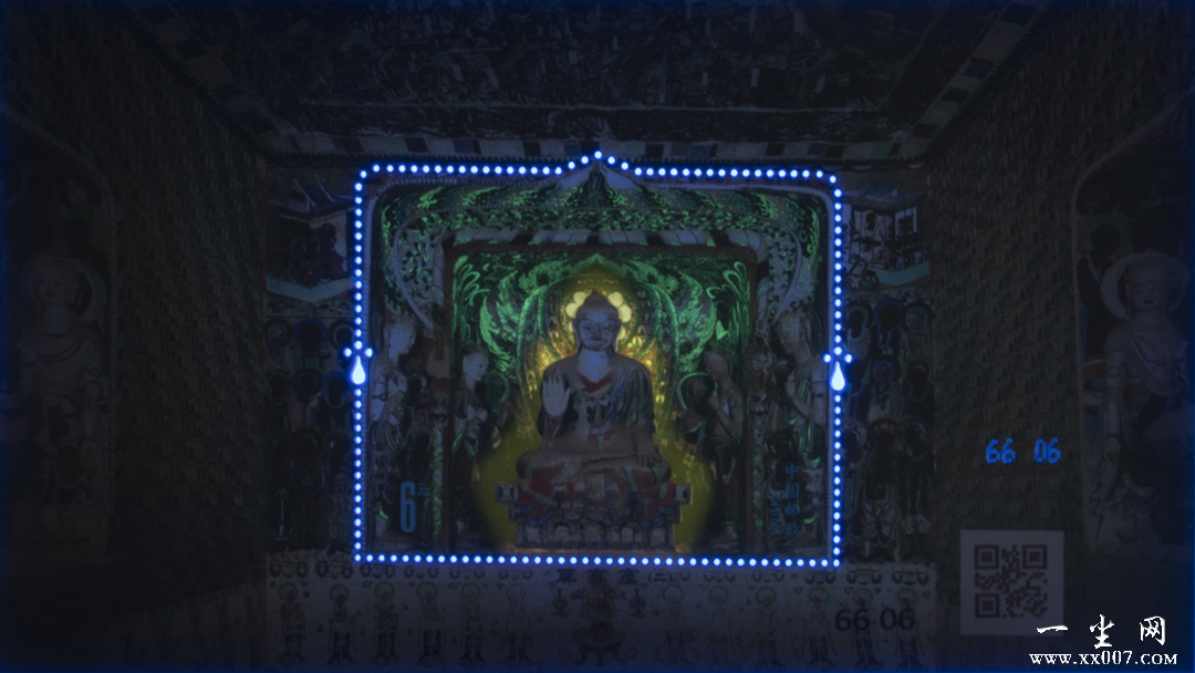 值得注意的是,《莫高窟(二)》邮票采用高精度胶版印制,边饰采用全真彩工艺,荧光灯下观察,呈现壁画的精美,犹如置身洞窟之中。小型张应用荧光油墨,在紫外灯下能看到渐变光晕效果,更好地体现了洞窟深邃繁复的视觉观感。