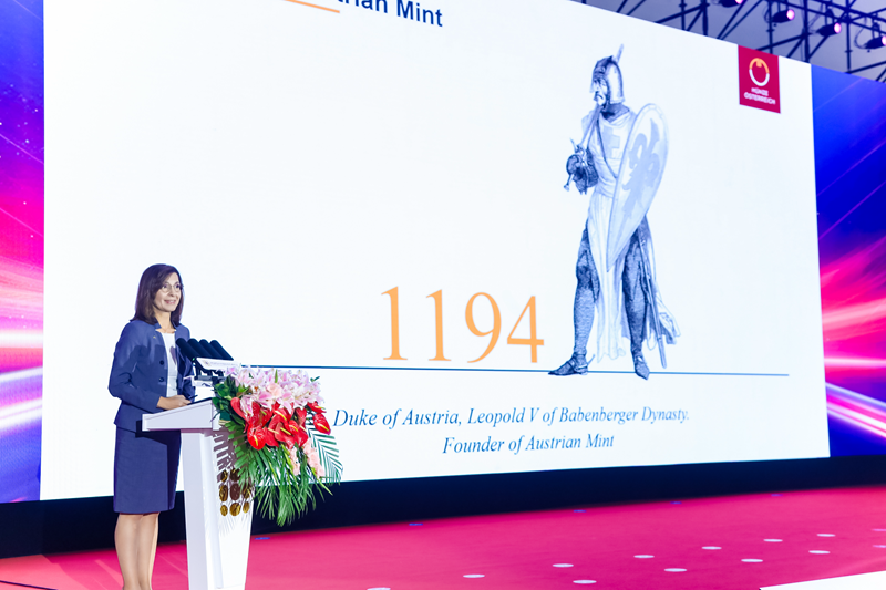 奥地利造币厂营销总监亚历姗卓拉·茉蕾丝女士介绍新产品