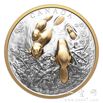 加拿大皇家造币厂曾在生产2024年龙年银币时首次采用双面超高浮雕工艺,而今年这枚河狸镀金银币则更进一步,其正面浮雕厚达4.15毫米,背面浮雕厚达6毫米,远超常规银币的浮雕标准,使河狸毛发、水波纹理、树枝结节都能以近乎立体雕塑的形态呈现。要实现这种工艺并非易事,雕刻师与产品工程师既要通过反复实验调整金属的体积分布,确保镀金银币在冲压过程中不会出现裂痕;又要严格控制浮雕的倾斜角度,以保证其正、背两面的细节都能完整呈现。钱币设计师在设计这枚镀金银币的超高浮雕时,也未采用传统的平面绘图方式,而是选择用黏土制作立体模型,以便从三维角度观察水上币面元素与水下币面元素的衔接,确保镀金银币正、背两面的河狸位置与动作都能够精准对应。