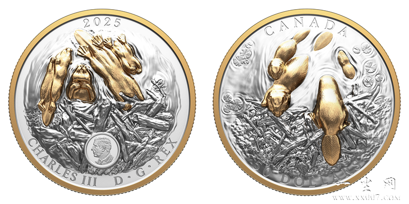 河狸在加拿大文化象征中占据着重要地位,这种有着“大自然工程师”美誉的可爱生灵,不仅以其改造栖息地的本能塑造了北美大陆的湿地环境,更在1975年3月24日随着《加拿大国家象征法案》通过获得皇家御准,正式成为代表加拿大主权的官方标志。2025年,为纪念河狸成为加拿大官方标志50周年,加拿大皇家造币厂发行了加拿大象征:河狸双面超高浮雕镀金银币。该枚银币将自然生态、文化记忆与先进造币工艺完美融合,向集藏爱好者们开启了一扇通往河狸隐秘世界的窗口。该币重量为100.74克,成色为99.99%,直径为50毫米,面额为50加拿大元,发行量为2750枚。