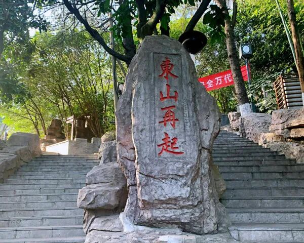 据《丹阳说》记载,东晋太原中都太傅(宰相)谢安仿旧隐会稽东山。在此建别墅,故又称此山为东山。又据史志载,谢安跟谢玄曾在东山别墅决策,取得了淝水之战的胜利,创造了我国古代战争史上以少胜多、以弱胜强的典型战例,引得历代许多名人、诗人仰慕。“东山再起”的故事由此而产生,比喻失势之后,重新恢复地位。