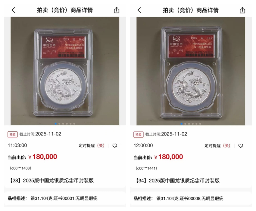 | 25 | 1号币-2025版中国龙银质纪念币封装版 | 460 | 185,400.00 |