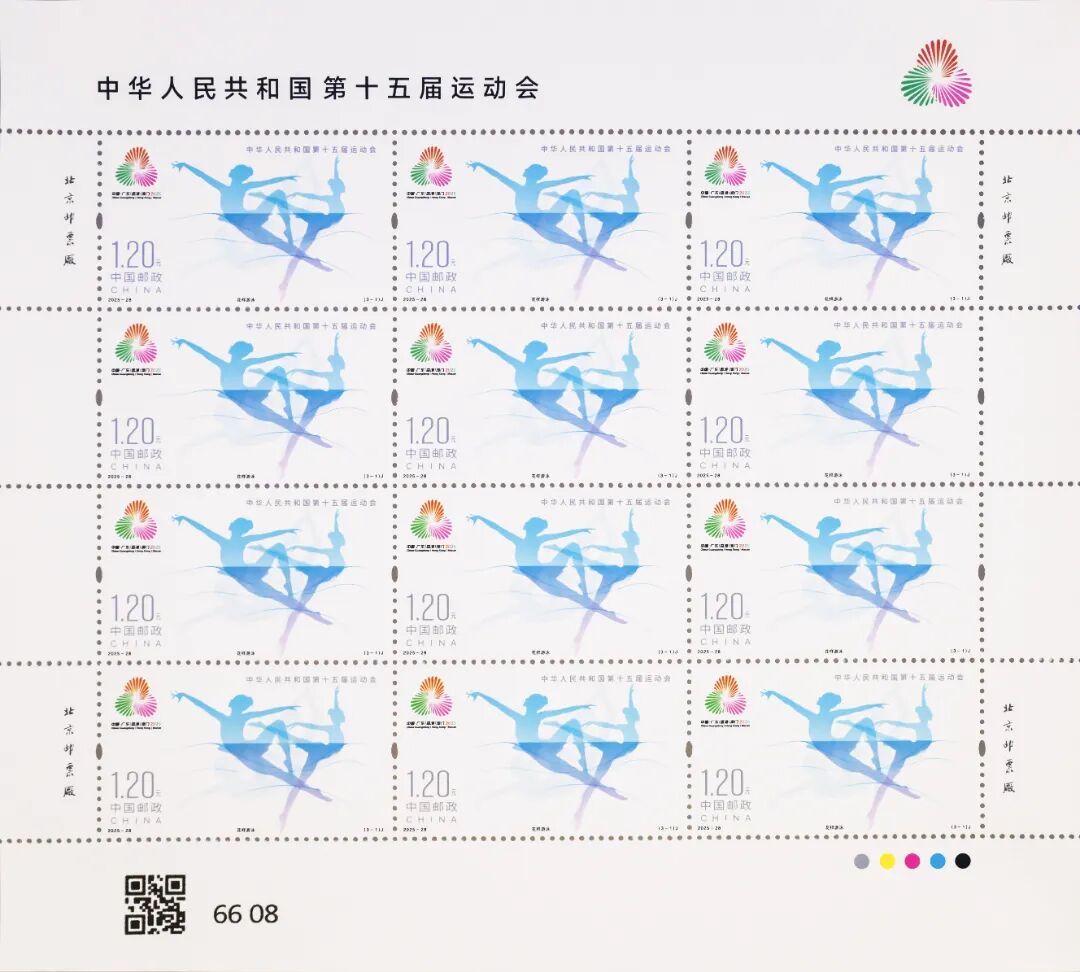 中国邮政定于2025年11月9日发行《中华人民共和国第十五届运动会》纪念邮票1套3枚,邮票图案名称为:花样游泳、击剑、乒乓球。全套邮票面值3.60元,计划发行数量为套票500万套,版式二69.3万版。