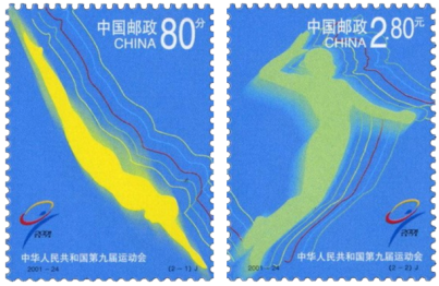 2001年11月11日,中国邮政发行《中华人民共和国第九届运动会》纪念邮票一套2枚,小全张1枚。中华人民共和国第九届运动会(简称九运会)于2001年11月11日至25日在广州举行。这次规模盛大的全国综合性体育盛会象征着中国人民迈向新世纪的开始,展示中华民族昂首阔步走进新时代的精神风貌。
