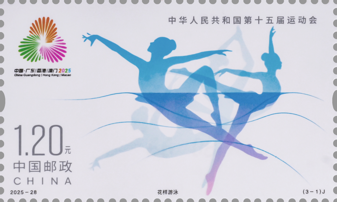 2025年11月9日,中国邮政发行《中华人民共和国第十五届运动会》纪念邮票一套3枚,邮票图案名称为:花样游泳、击剑、乒乓球。本套邮票由内地、港、澳三地设计师分别设计完成。该套邮票采用高精度胶印工艺印制,整体色彩明快,细节表现清晰。中华人民共和国第十五届运动会是粤港澳三地承办的我国规模最大、水平最高、影响最广的综合性运动会,也是香港、澳门首次承办全国运动会。